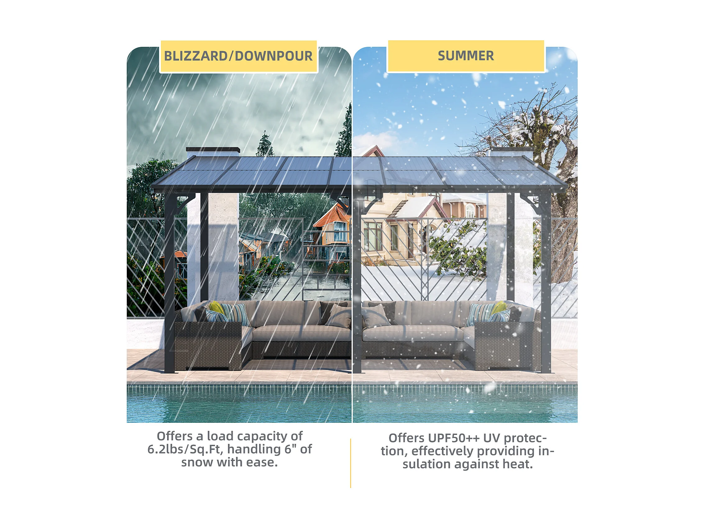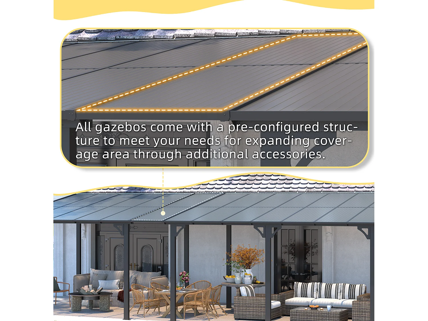 YODOLLA - Pergola Murale en Aluminium - toit incliné - Résistant aux UV & Vent - Tonnelle Jardin Exterieur - 4.3x3M - Noir