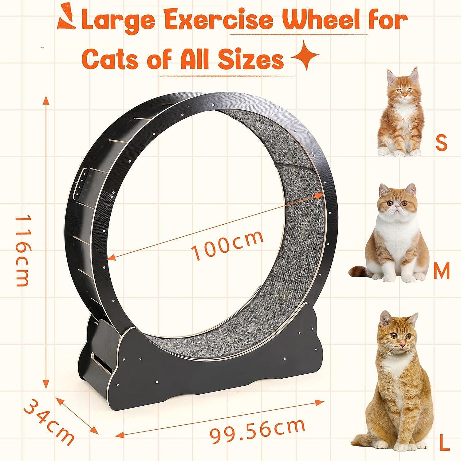 Roue d'Exercice pour Chat, SucceBuy Cat Exercise Wheel Grand Tapis Roulant d'Intérieur pour Chat 91 cm