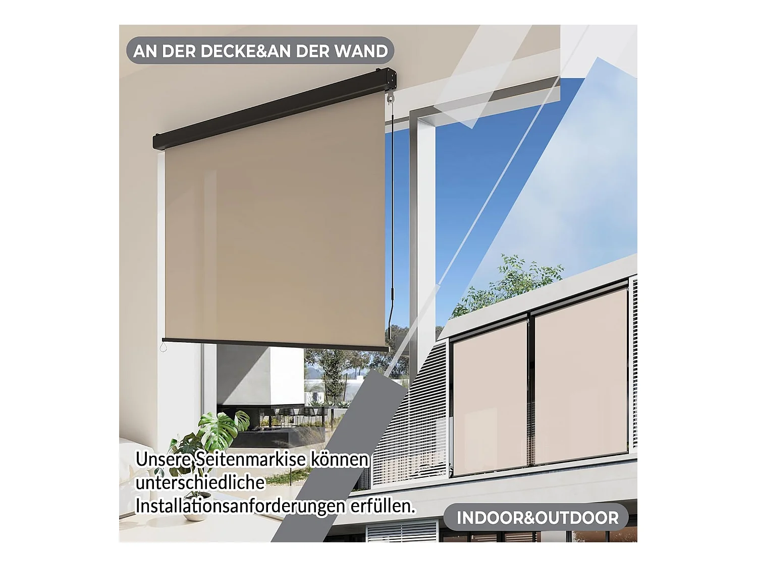 YODOLLA Store Vertical, Rétractable avec Coffre, Occultant Exterieur Fenetre, Auvent rétractable 160x250cm, pour Balcon, Terrasse, Jardin et Intérieur, Beige
