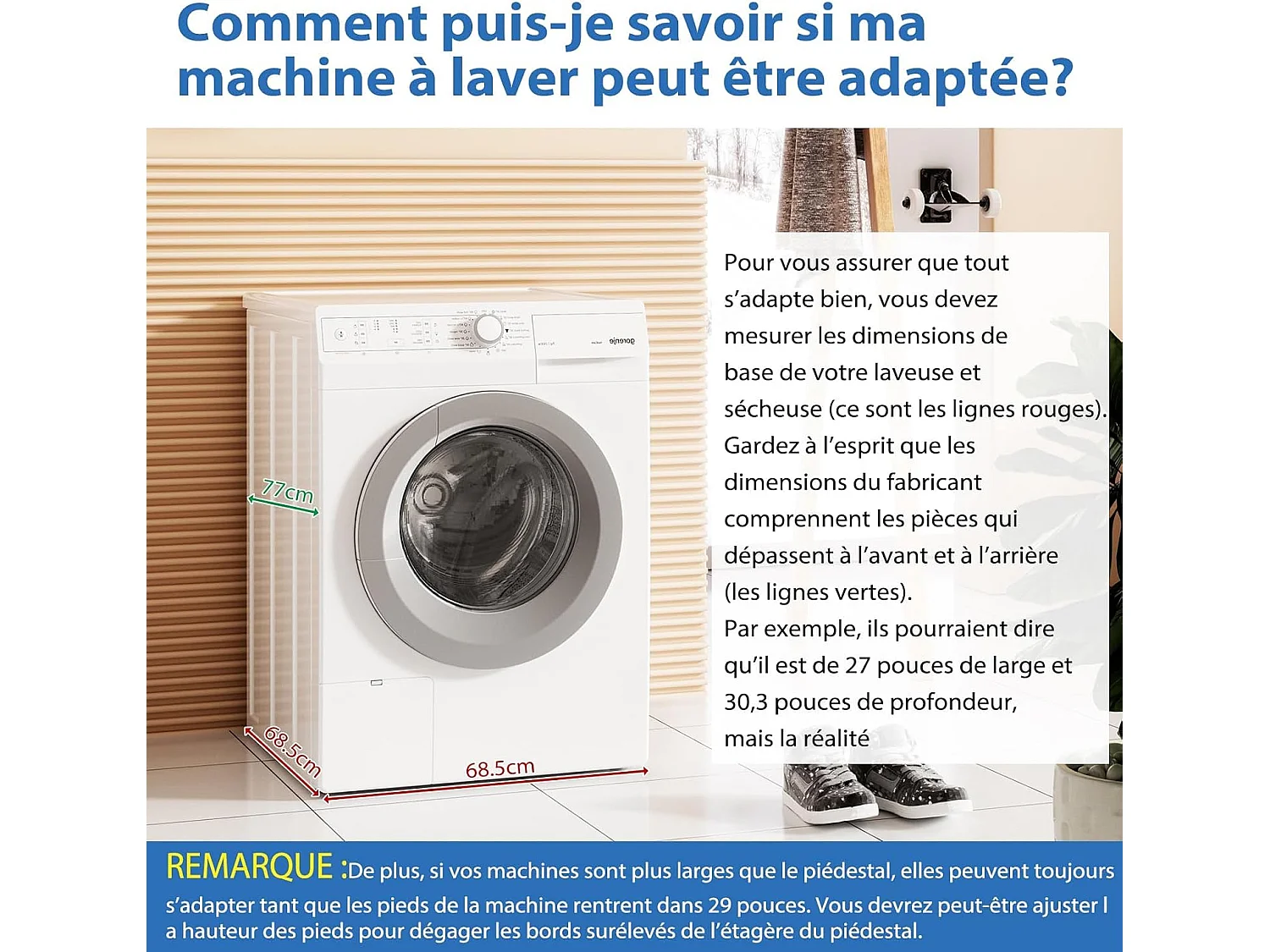 YODOLLA Support Machine à Laver 73x73x58 cm - Métal, Charge 320kg - avec Tiroir et Placard, Pieds Antidérapants - Blanc