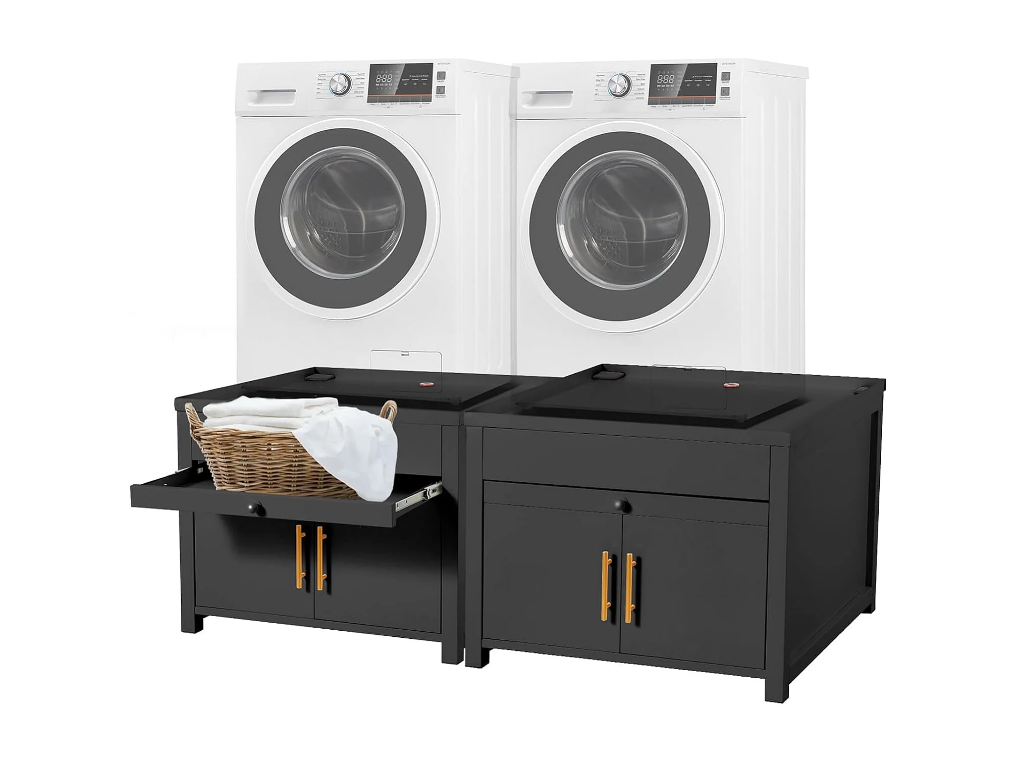 YODOLLA Support Machine à Laver 73x73x58 cm - Métal, Charge 320kg - avec Tiroir et Placard, Pieds Antidérapants - Noir