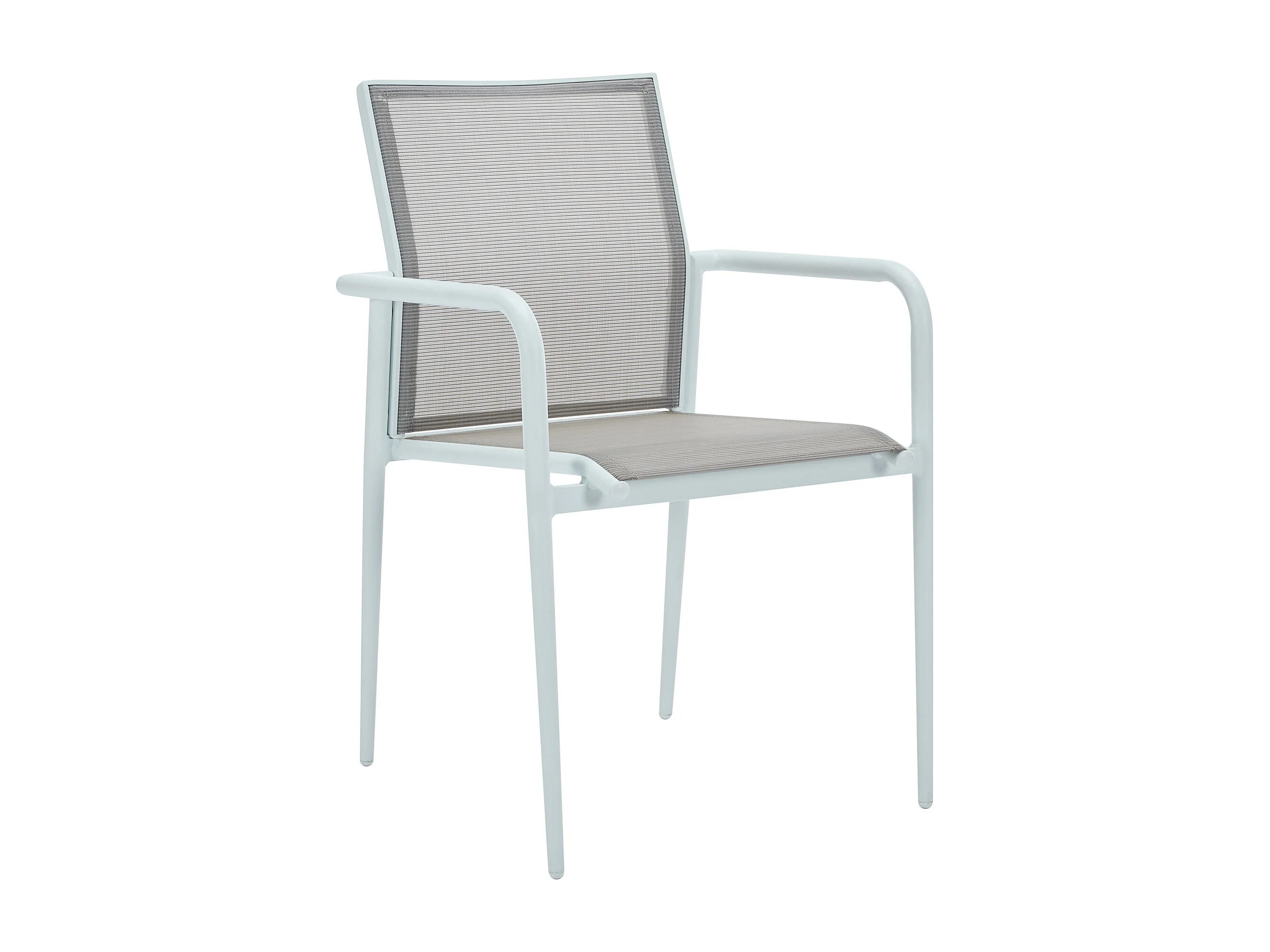 Salle à manger de jardin en aluminium : une table extensible L.150/200 cm et 6 fauteuils empilables - Gris clair et blanc - YOHA de MYLIA
