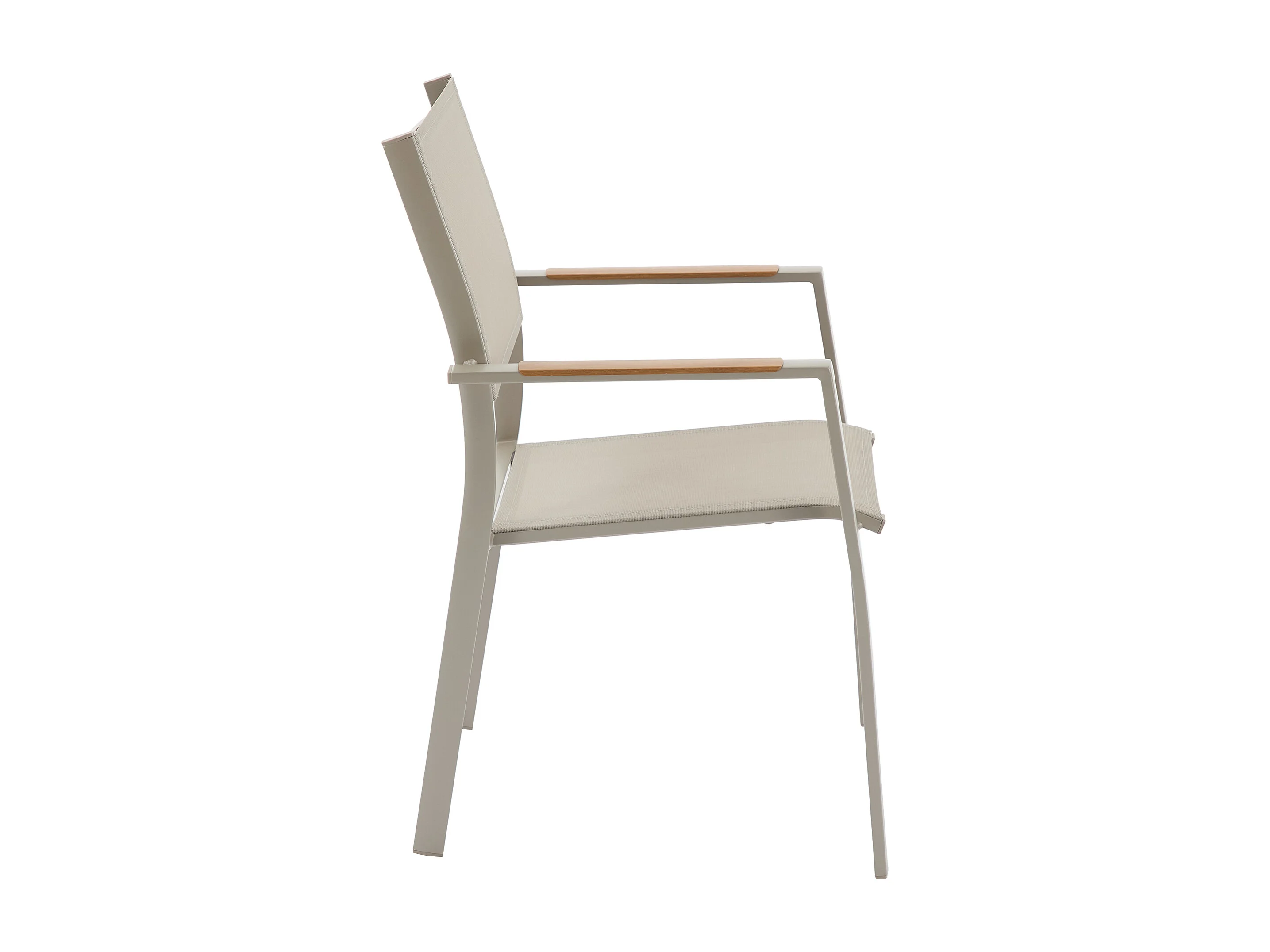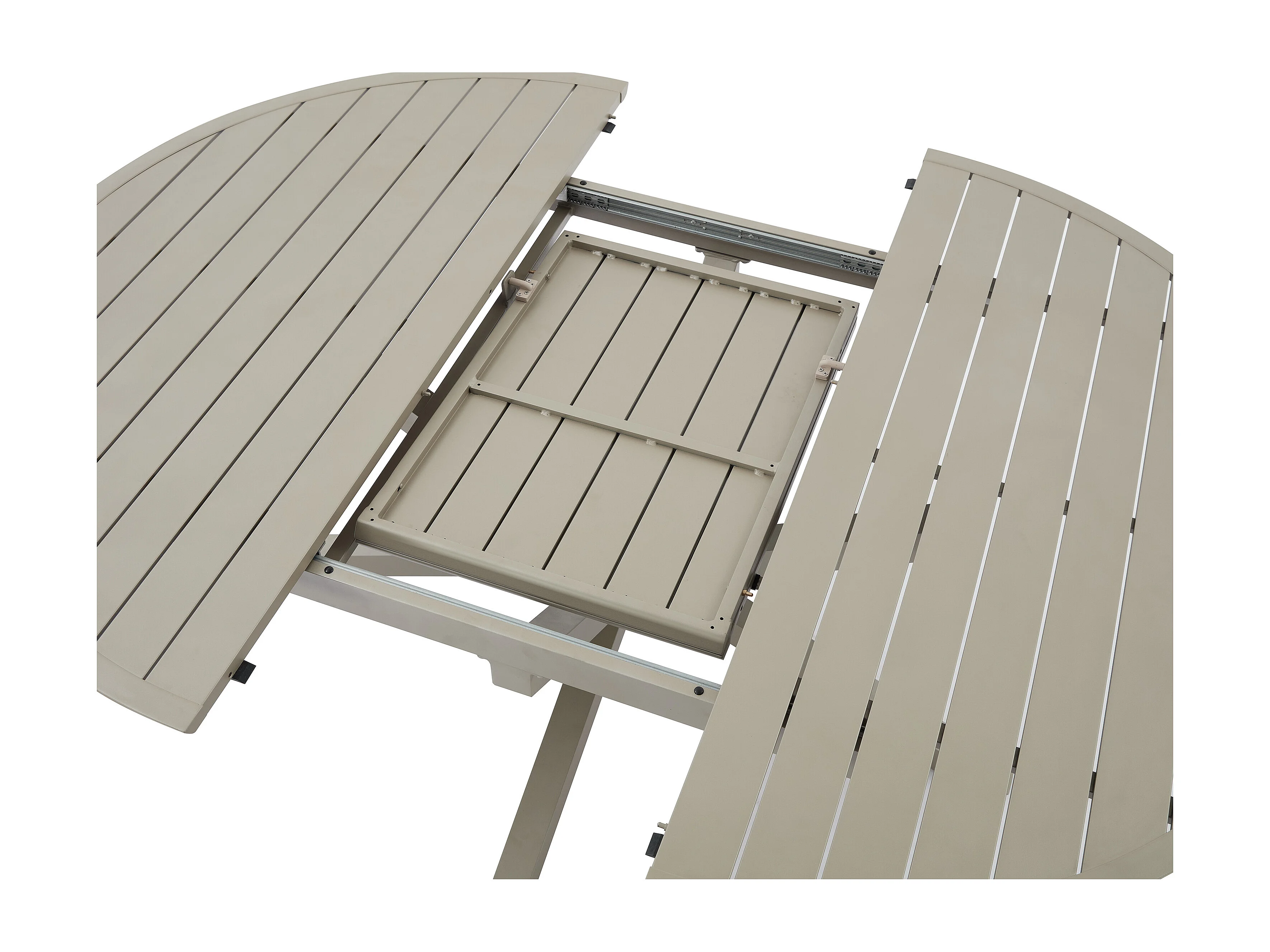 Salle à manger de jardin en aluminium : une table ronde extensible L.150/200 cm et 4 fauteuils empilables - Taupe - YOHA de MYLIA
