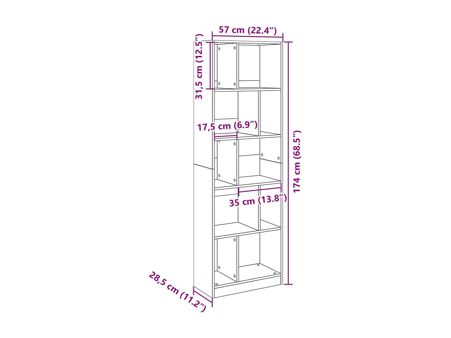 York Bibliothèque gris béton 57x28,5x174 cm bois d'ingénierie