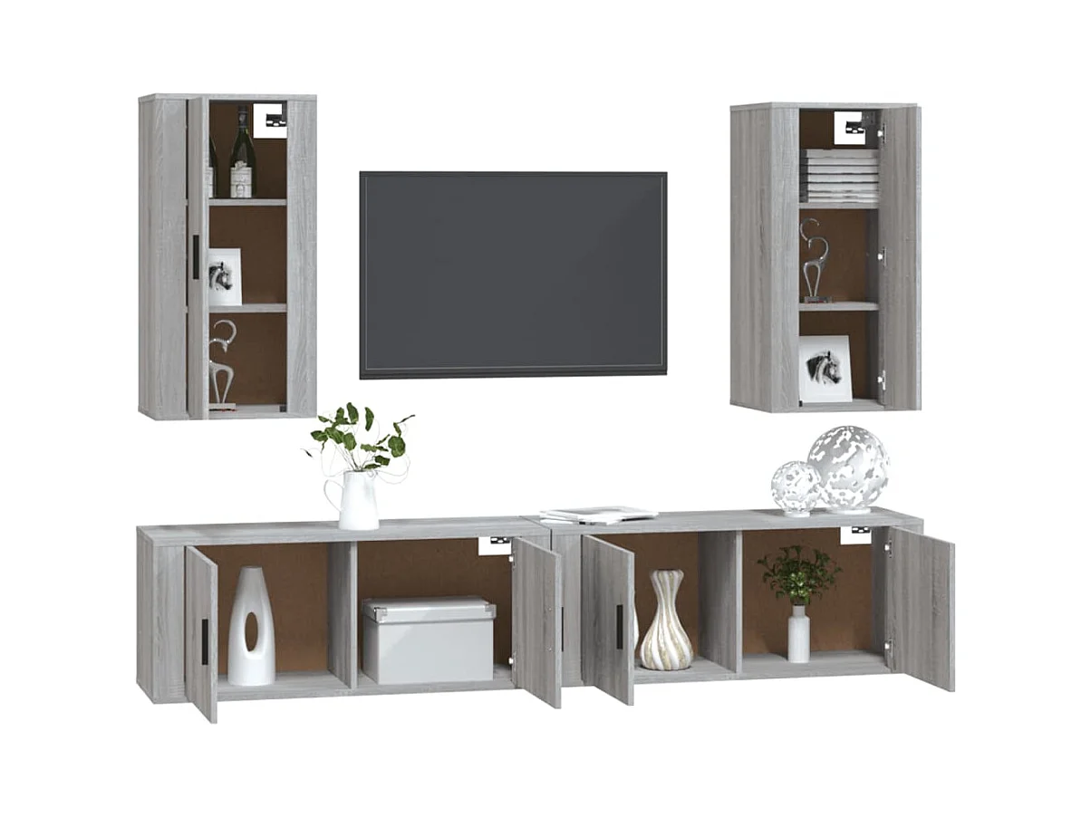 Yrill Ensemble de meubles TV 4 pcs Sonoma gris Bois d'ingénierie