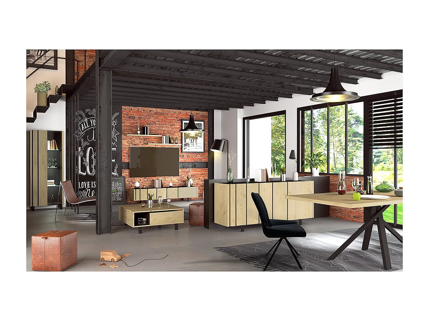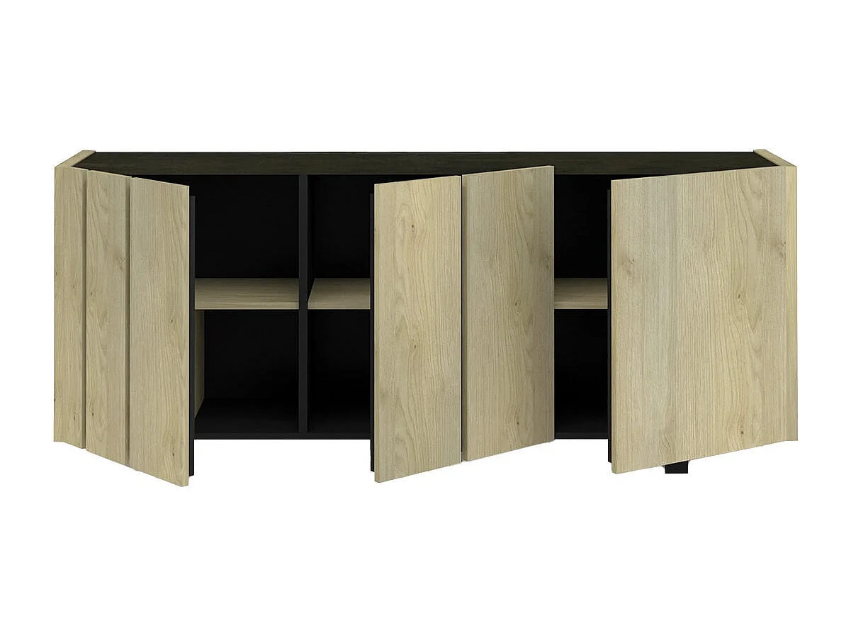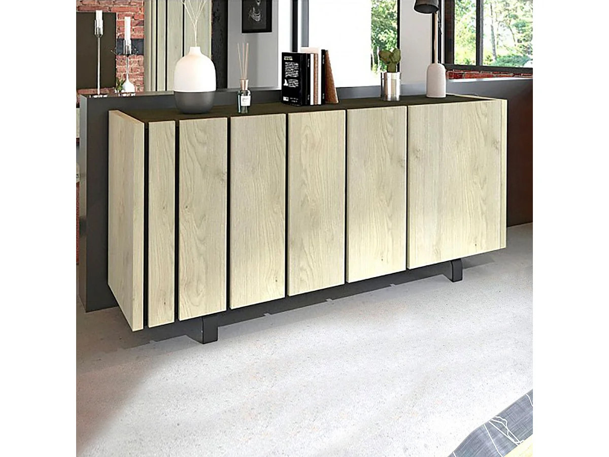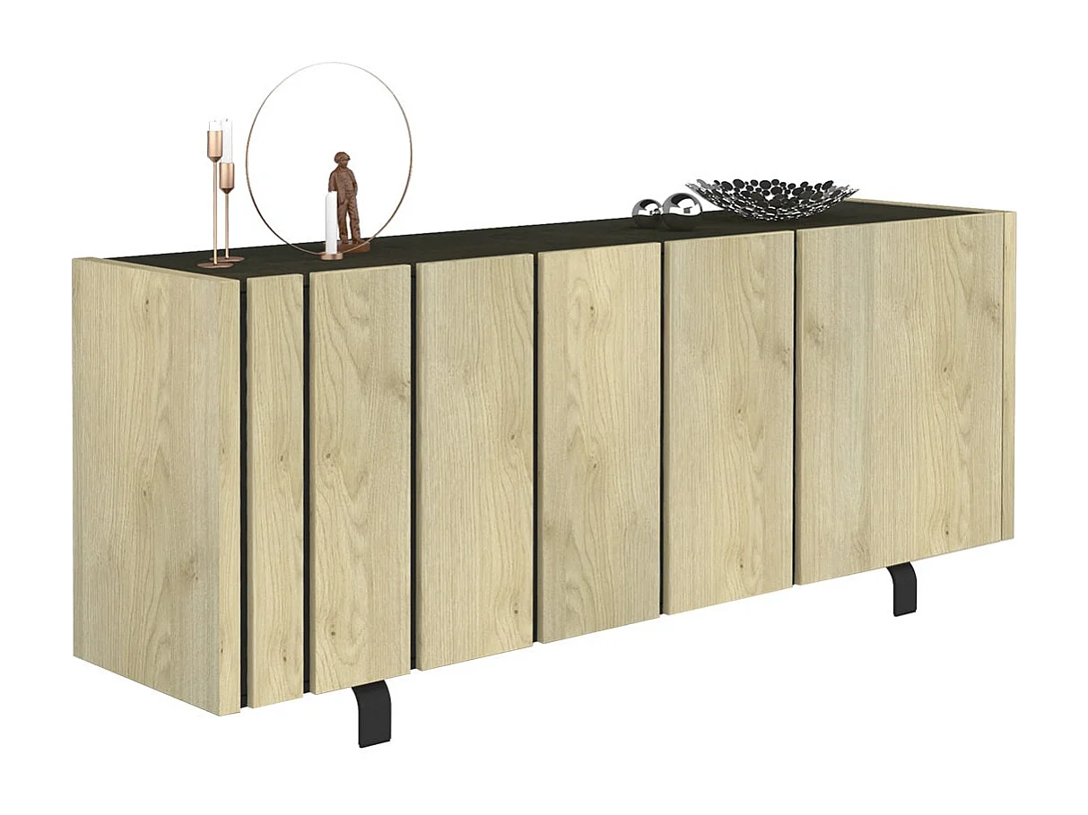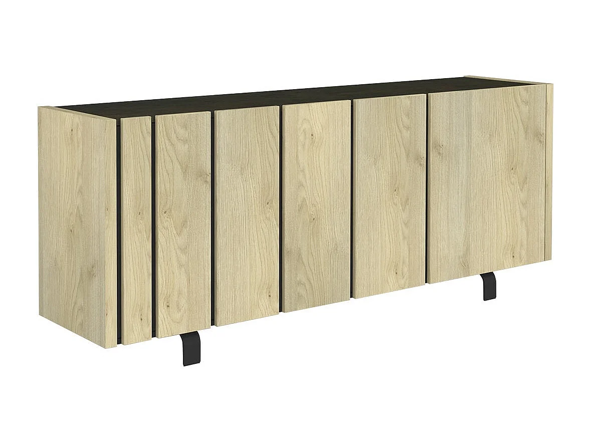 YUMA - Buffet 3 Portes Industriel Effet Chêne et Métal