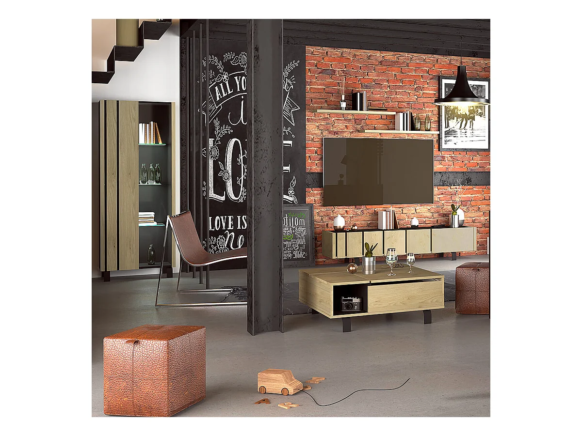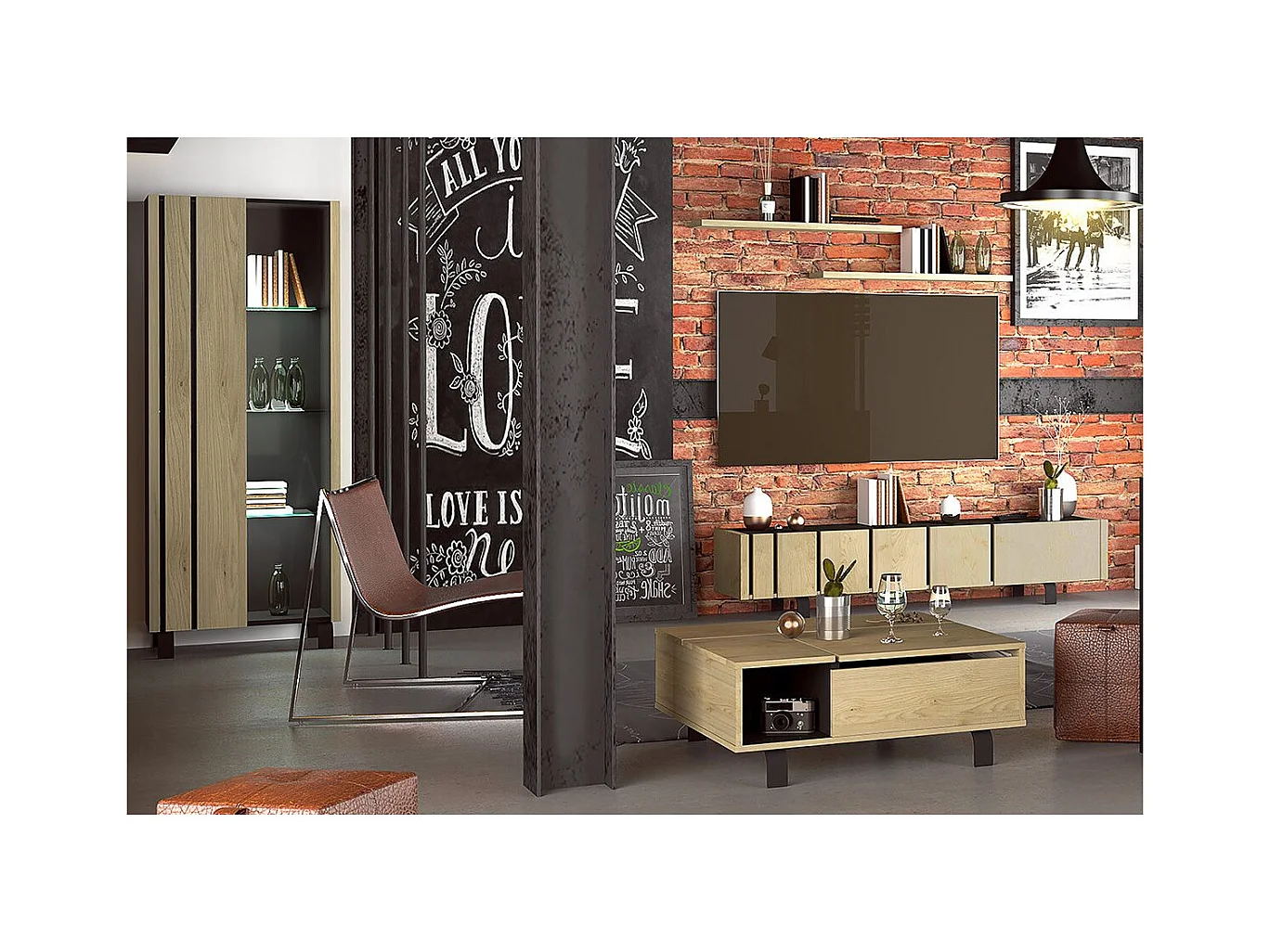 YUMA - Pack Table Basse Relevable + Meuble TV + Vitrine Réversible