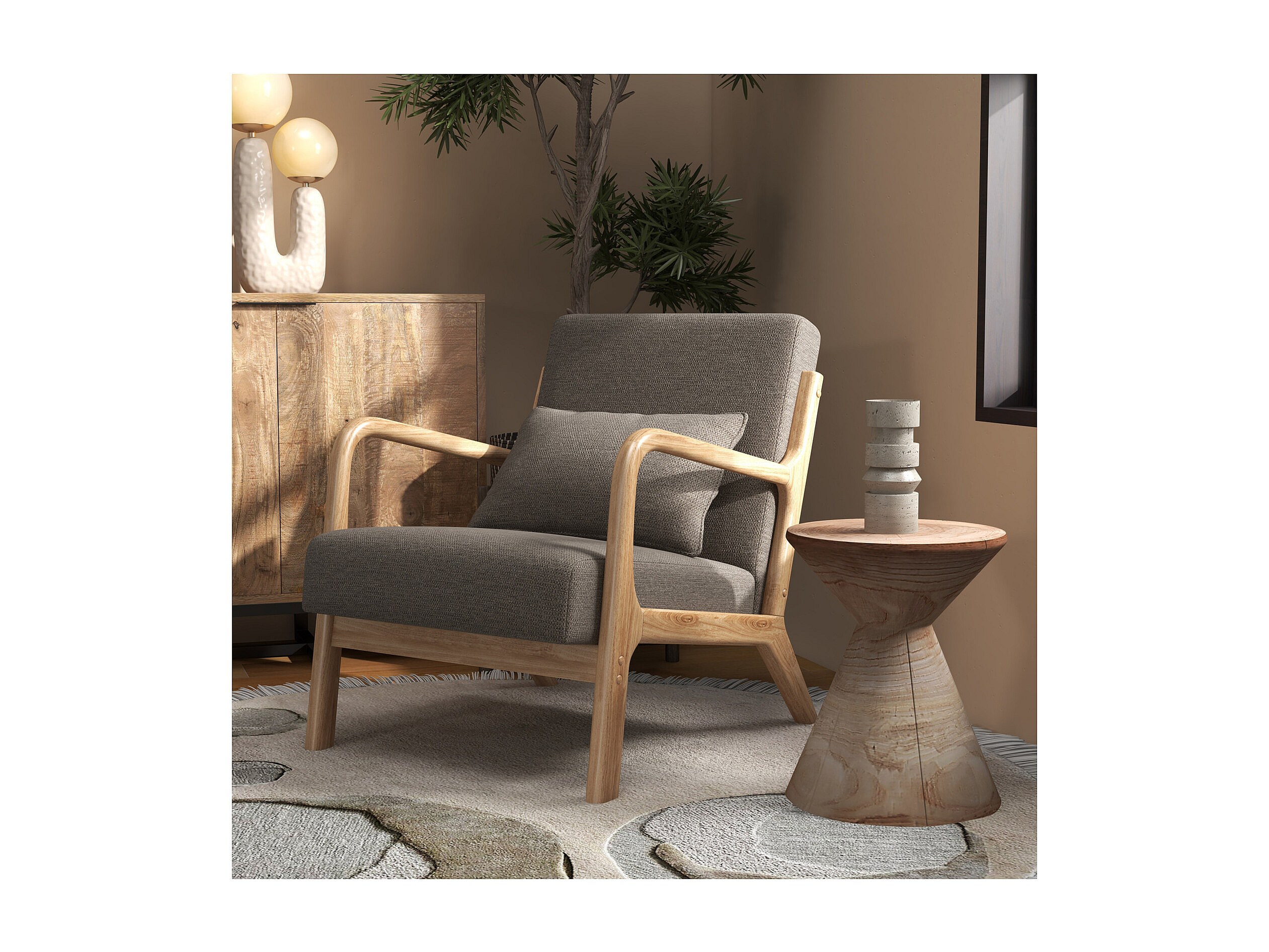 ZACK-Fauteuil en bois naturel et tissu Trendy Taupe