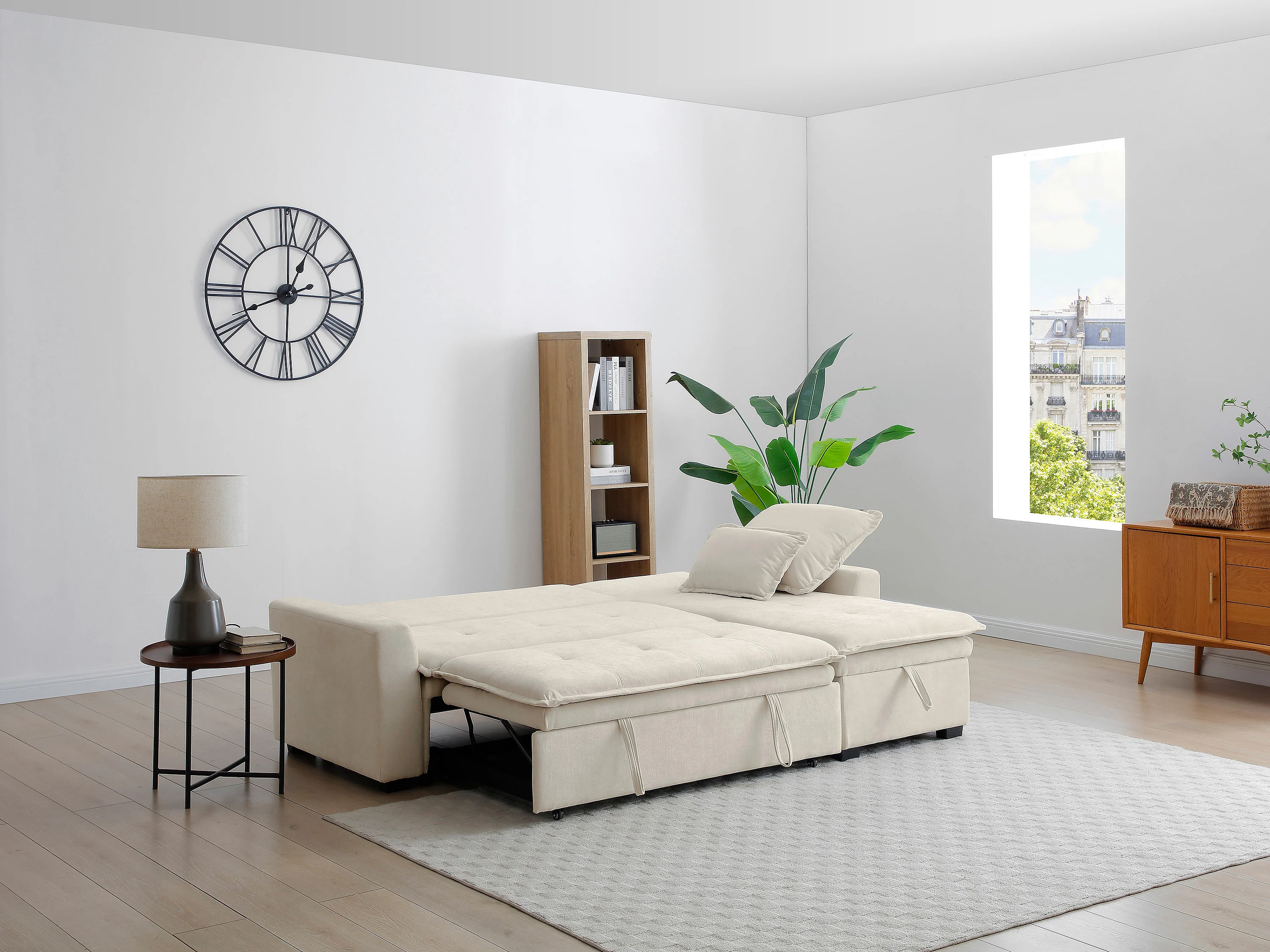 Canapé d'angle convertible et réversible en tissu blanc cassé ZAKILA