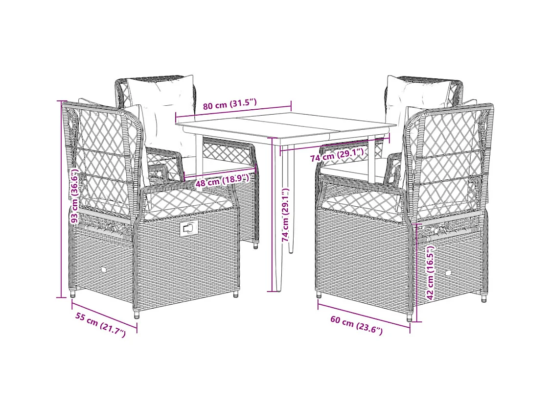 Zalan Ensemble à manger de jardin 5 pcs et coussins marron poly rotin