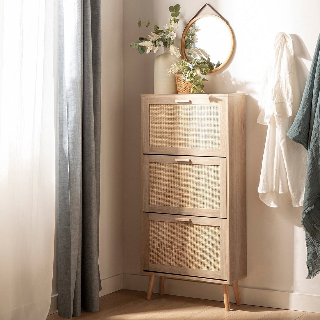 Zapatero étroit en rotin naturel 64x129 cm-Tahiti