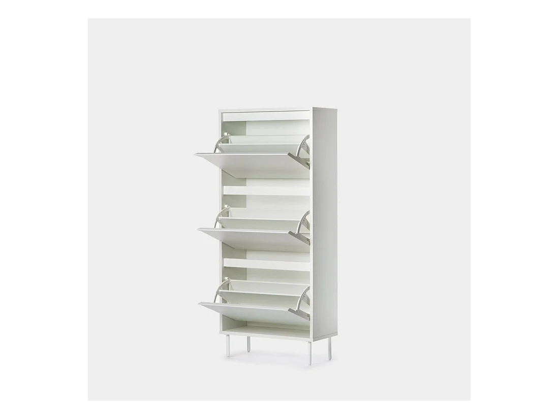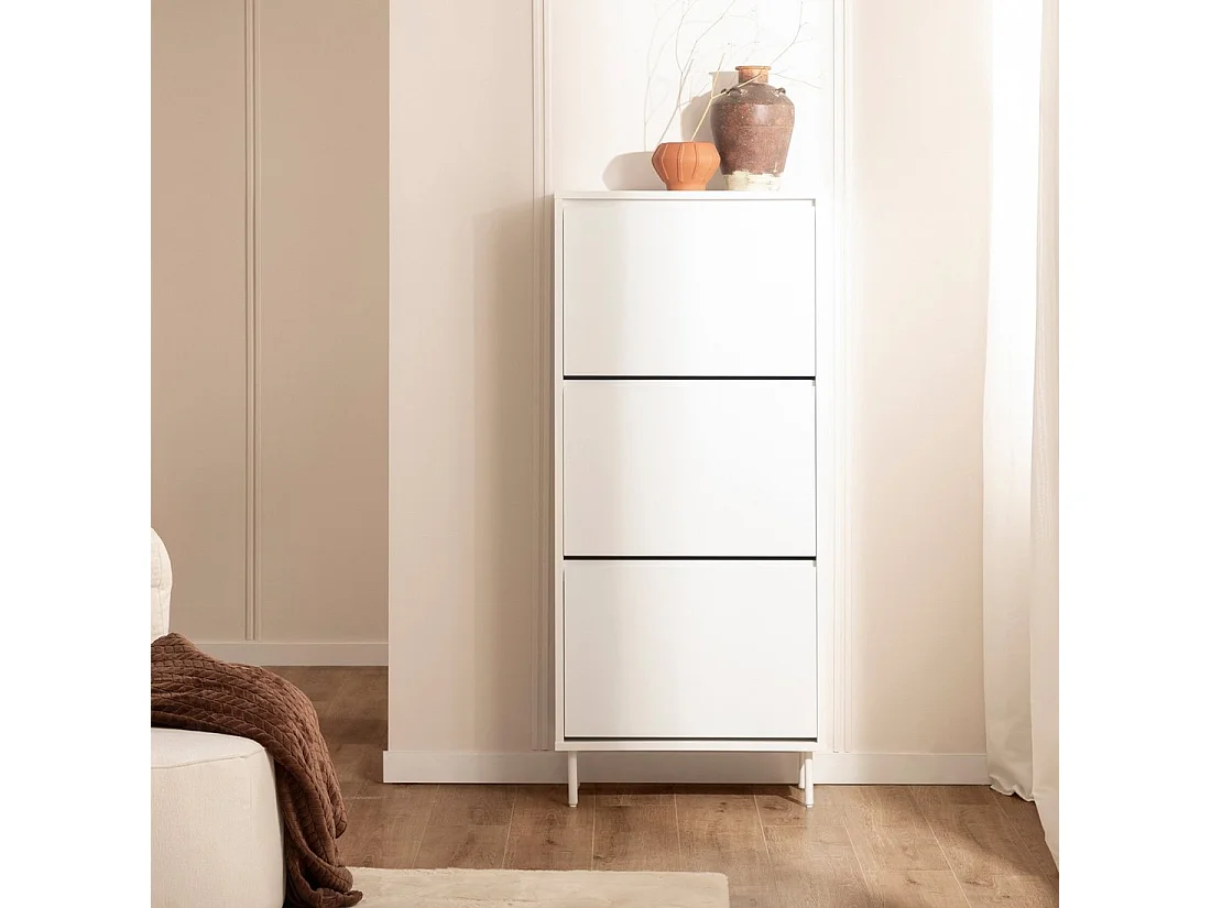 Zapatero étroit en laqué blanc 64x146 cm-Esben