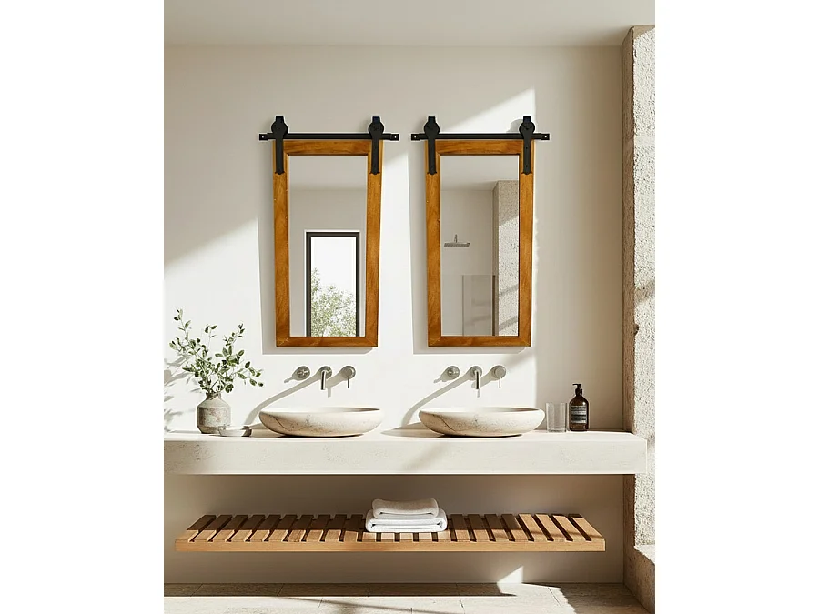 Zara - Miroir mural rectangulaire en bois massif et métal