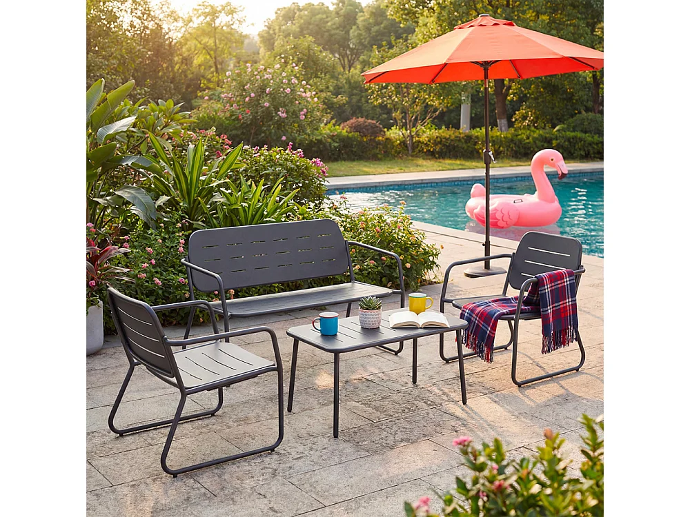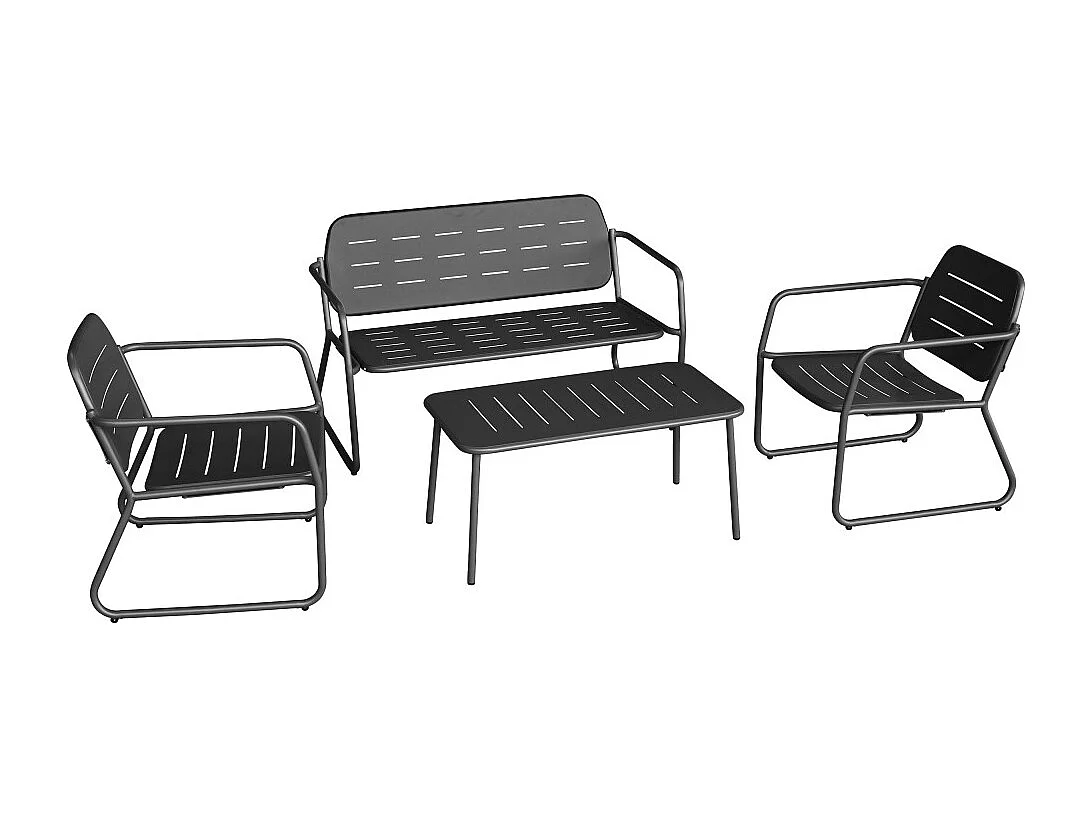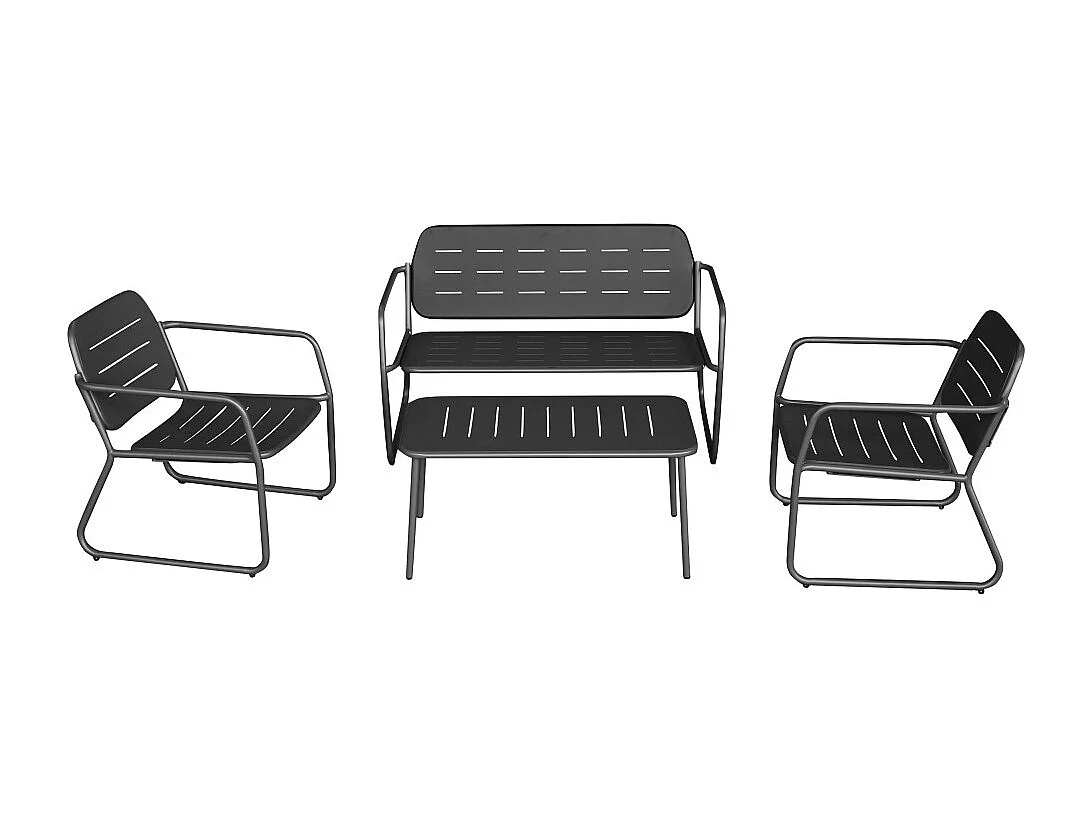 Zaro - Salon de jardin 4 places en métal - Gris foncé