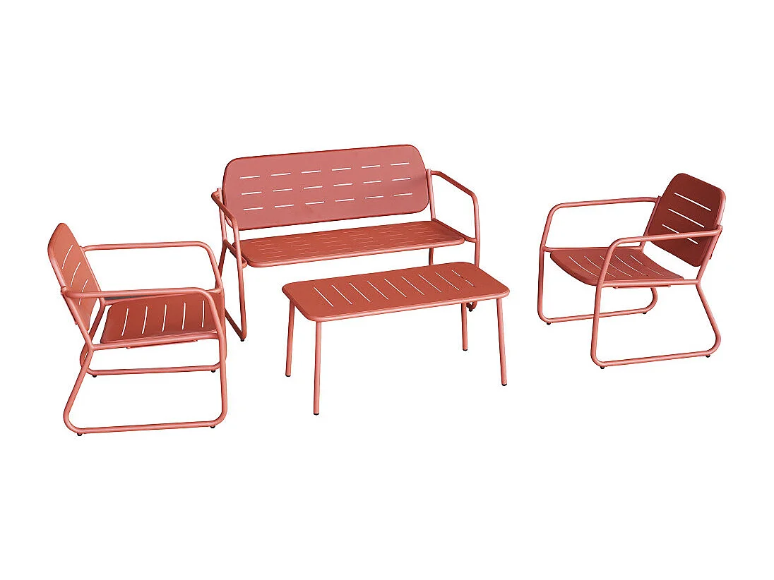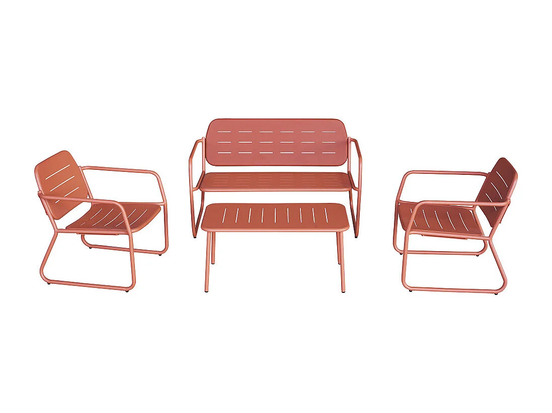 Zaro - Salon de jardin 4 places en métal - Terracotta