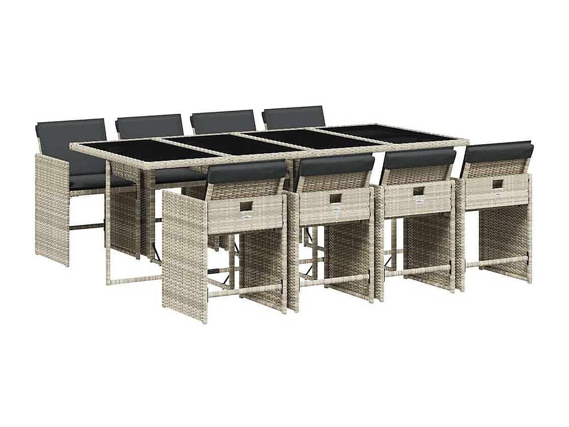 Zele Ensemble à manger de jardin et coussins 9 pcs gris clair rotin