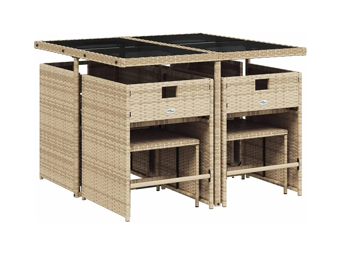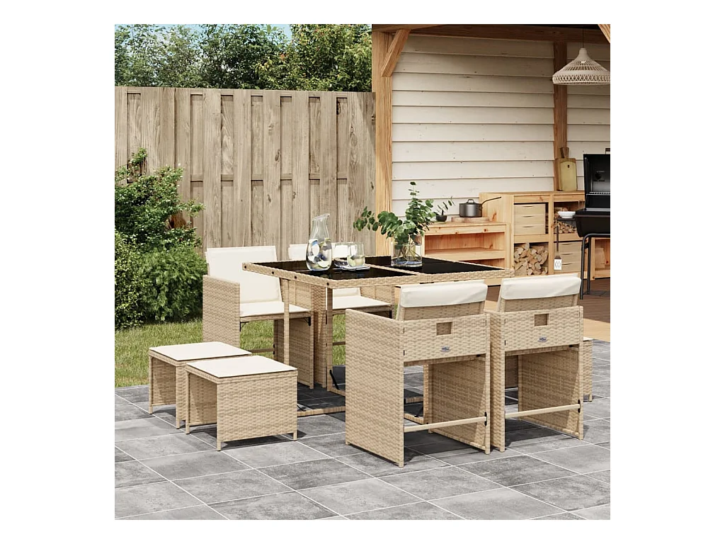Zenn Ensemble à manger de jardin et coussins 9 pcs beige Poly rotin