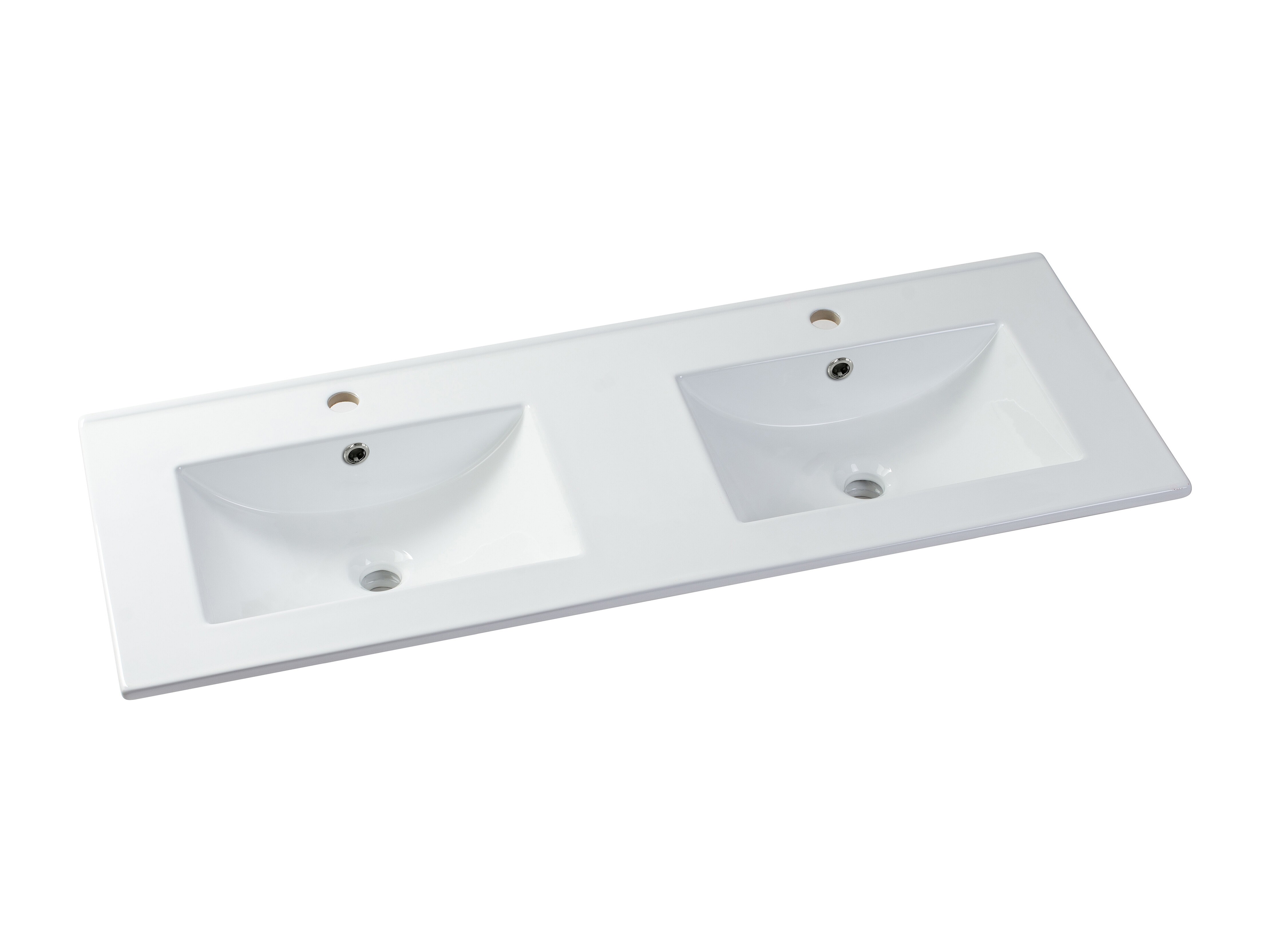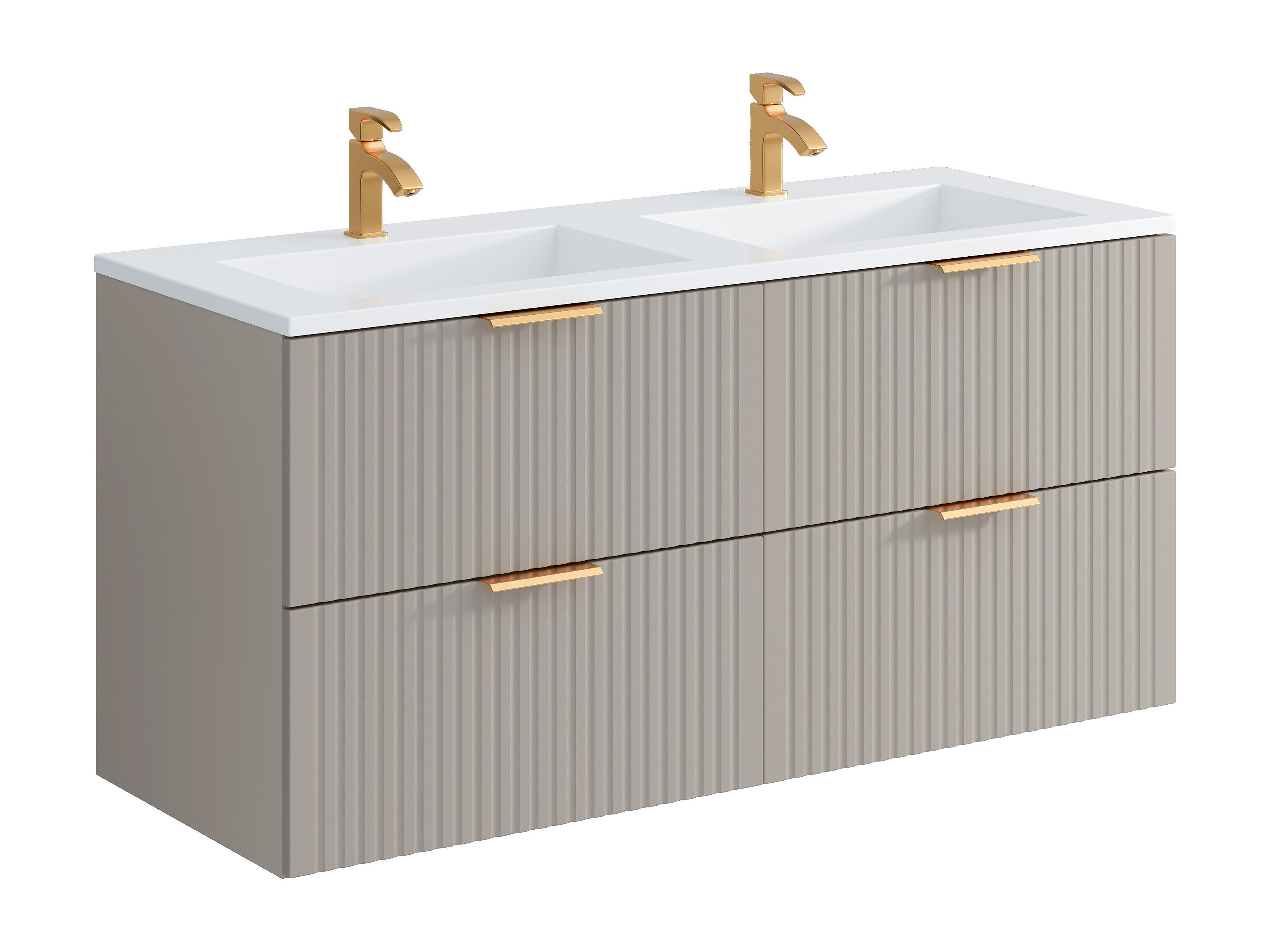 Meuble de salle de bain suspendu strié avec vasque à encastrer et colonne - Coloris beige - 120 cm - ZEVARA