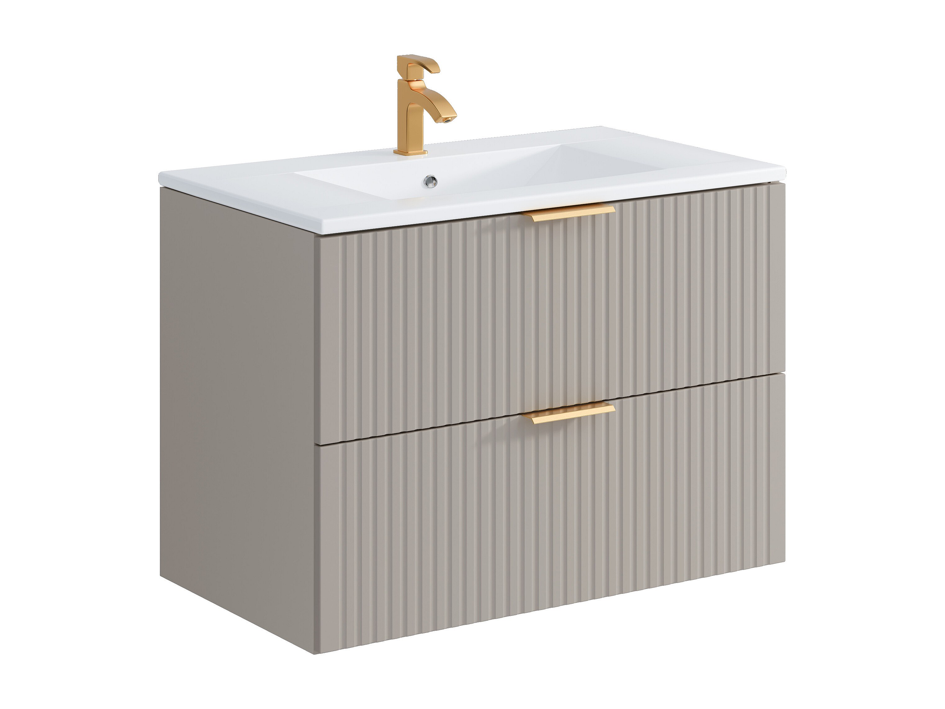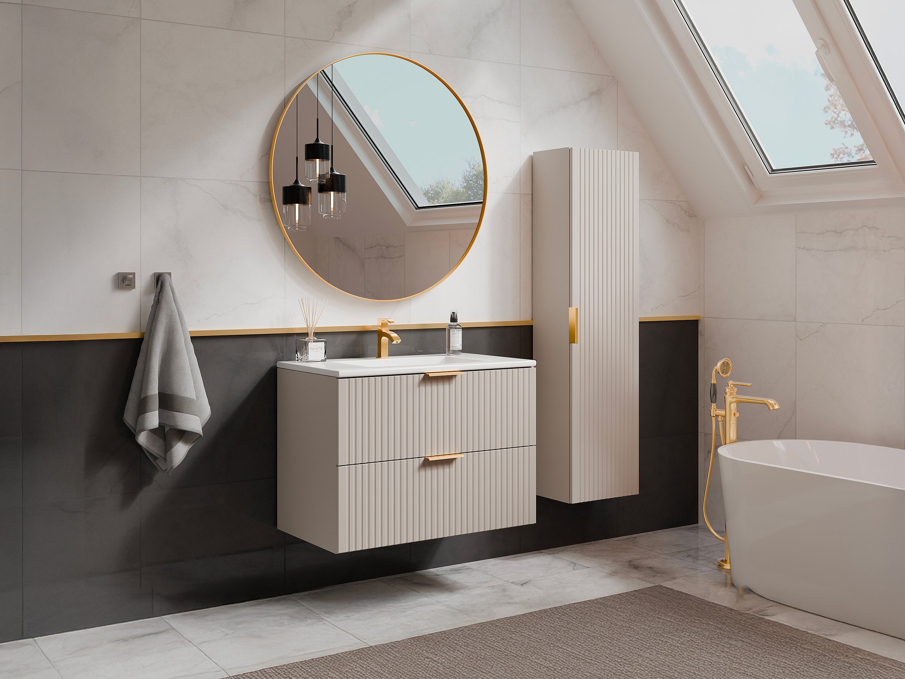 Meuble de salle de bain suspendu strié avec vasque à encastrer et colonne - Coloris beige - 80 cm - ZEVARA