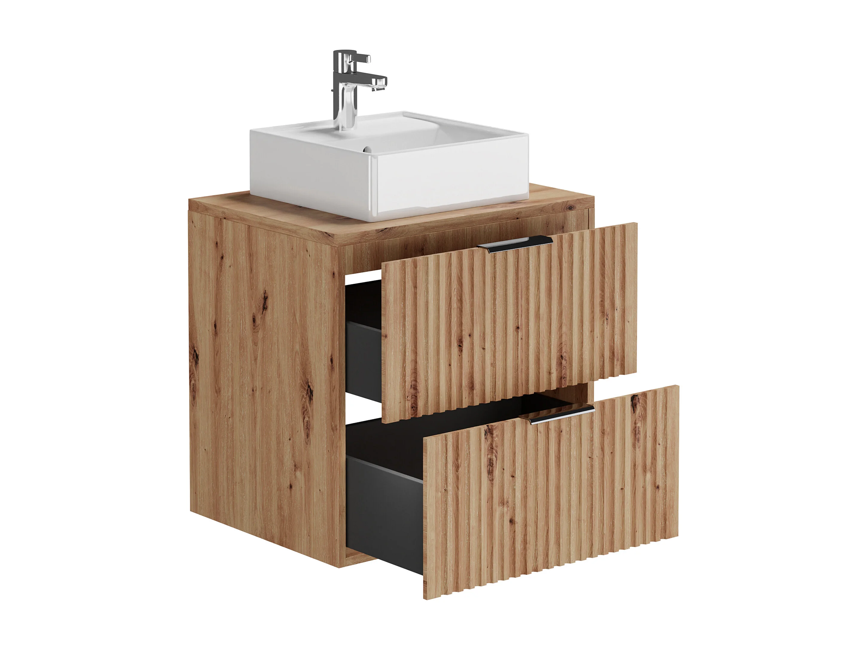 Meuble de salle de bain suspendu strié avec vasque à poser carrée - Naturel clair - L60 cm - ZEVARA