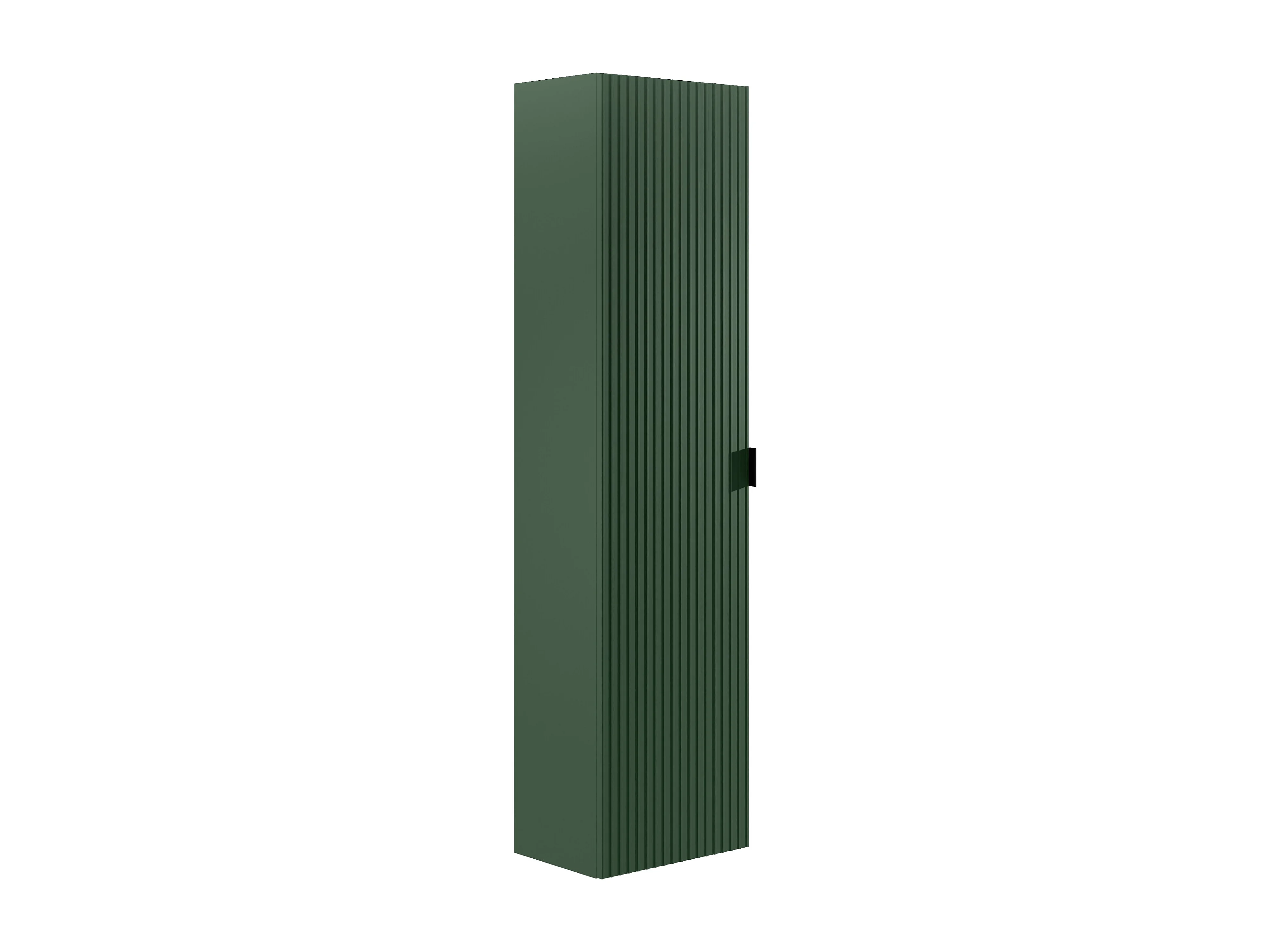 Meuble de salle de bain suspendu strié avec vasque à poser carrée et colonne - Vert mat - 80 cm - ZEVINI