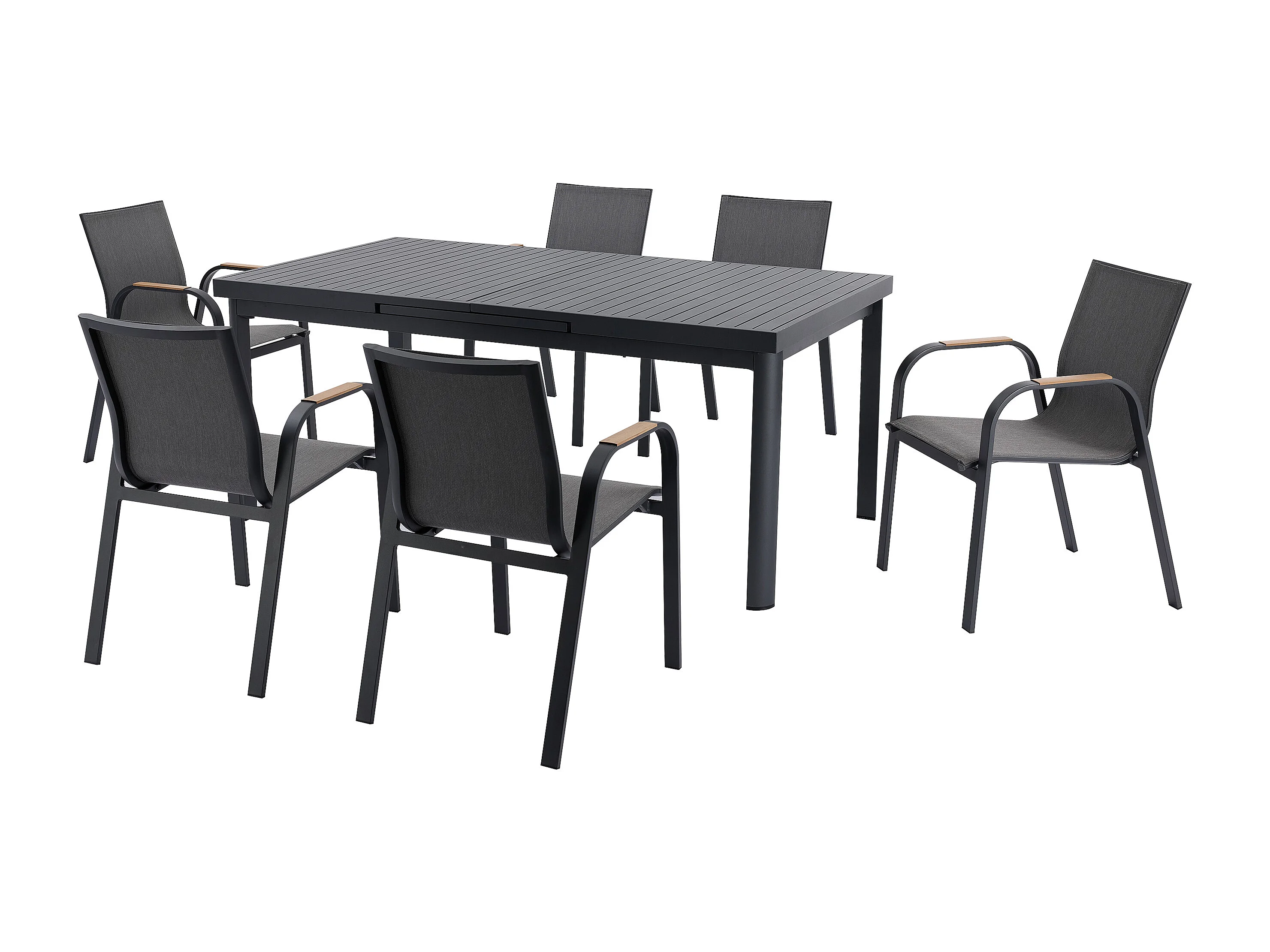 Salle à manger de jardin en aluminium : une table extensible L.180/240 cm et 6 fauteuils - Anthracite - ZEYVA de MYLIA