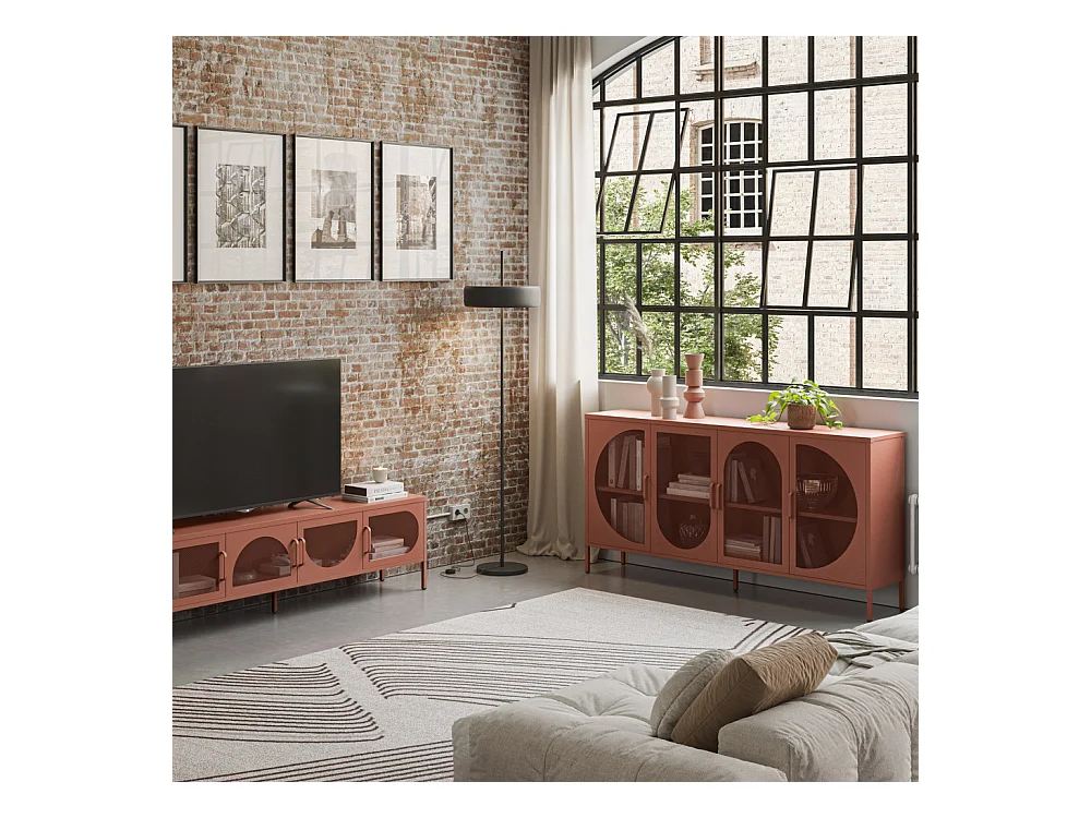 Zio - Buffet 4 portes en métal L160cm - Terracotta