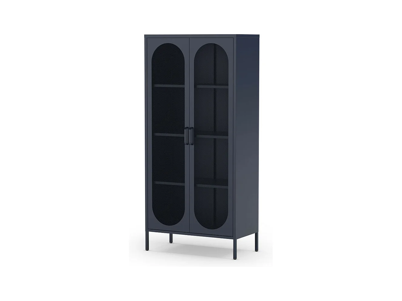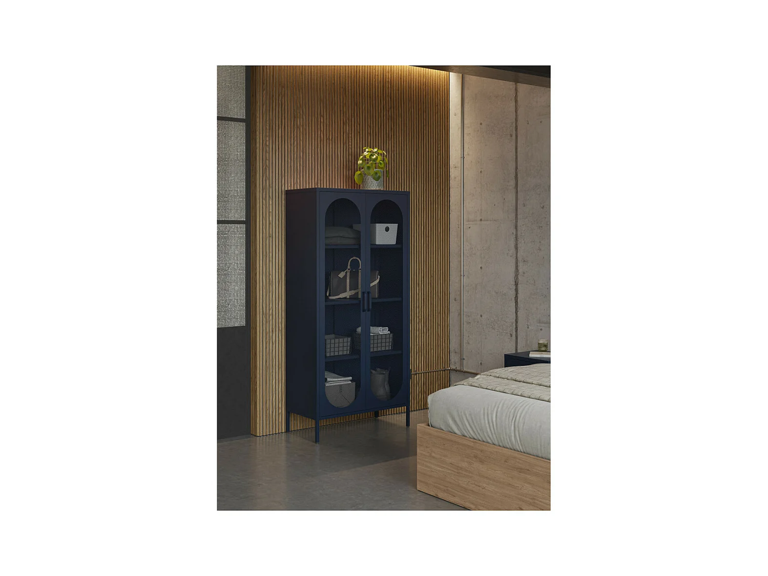 Zio - Vaisselier 2 portes en métal H170cm - Bleu nuit
