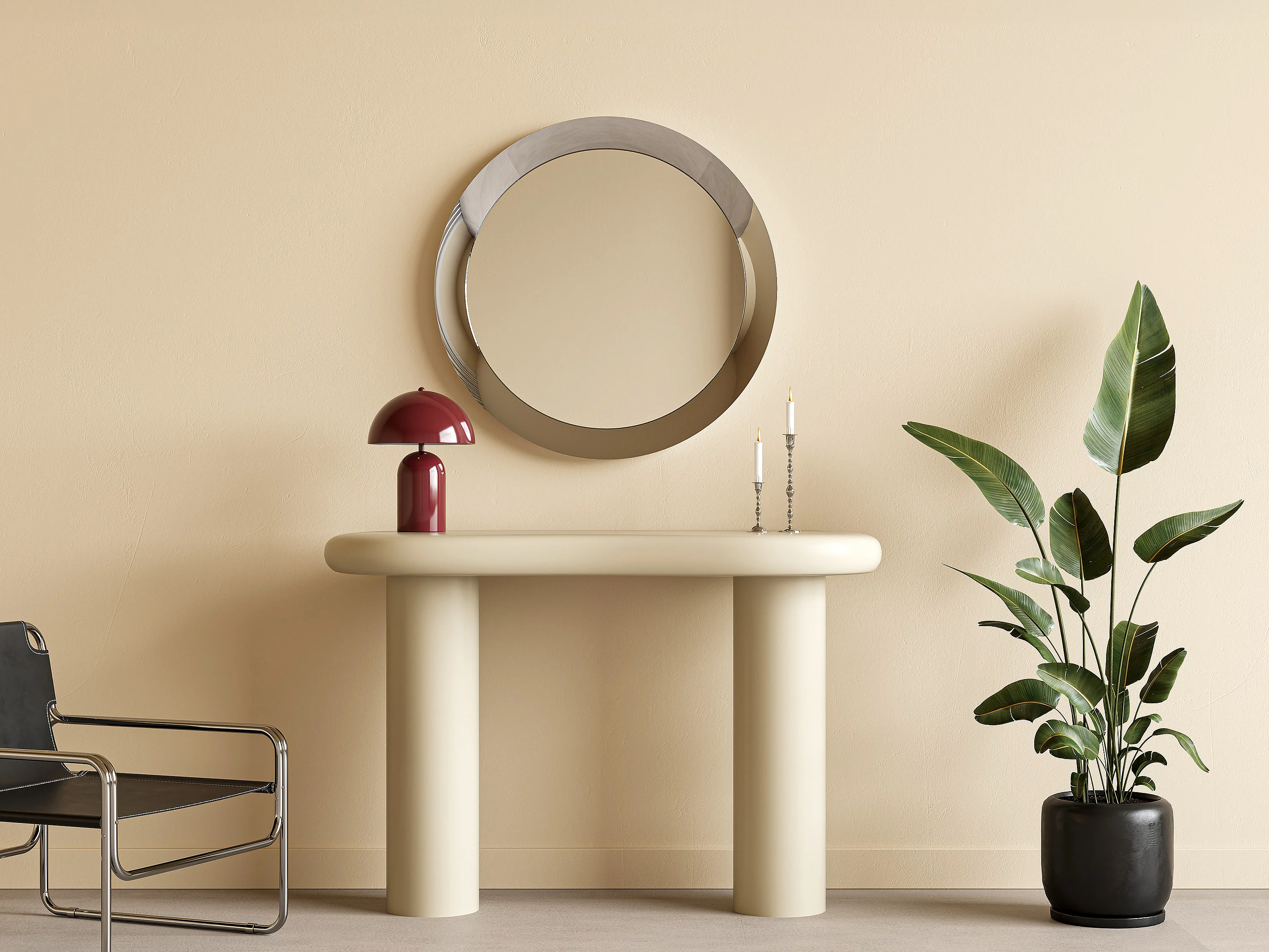Miroir mural rond en aluminium - D. 90 cm - Chromé -ZIRYA