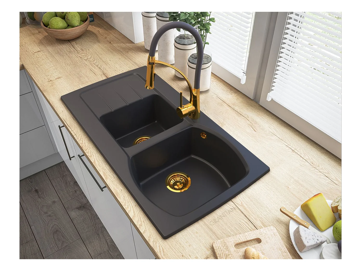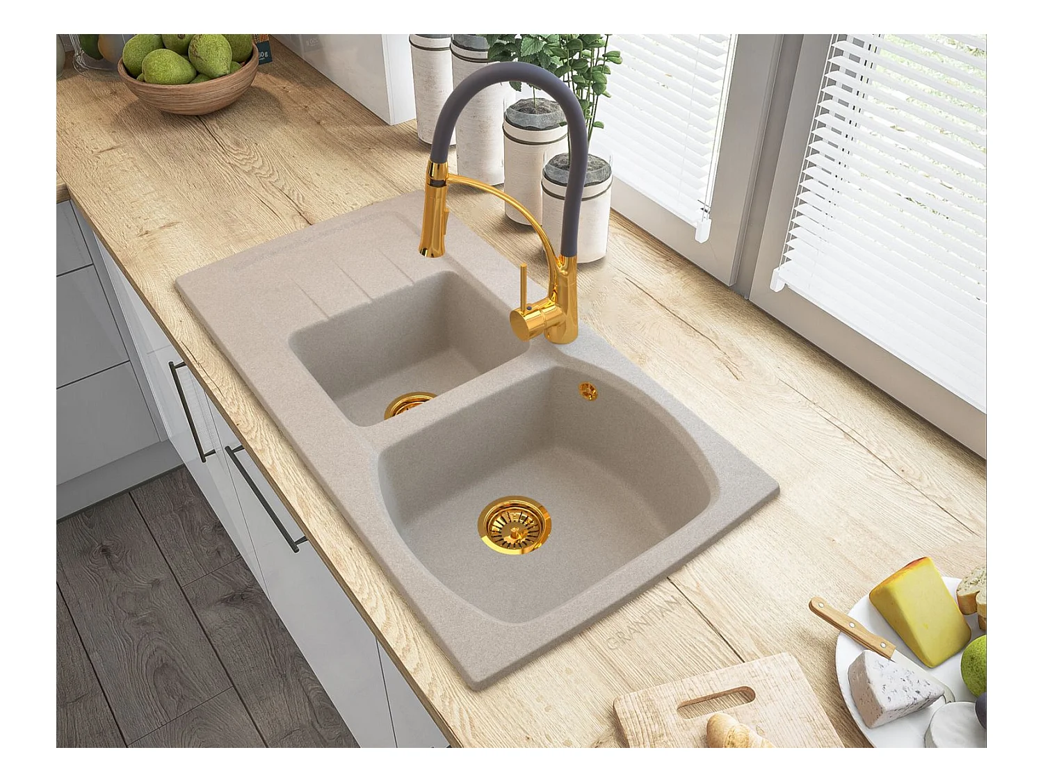 ZŁOTY Syfon zlewozmywak GRANITOWY dwukomorowy
