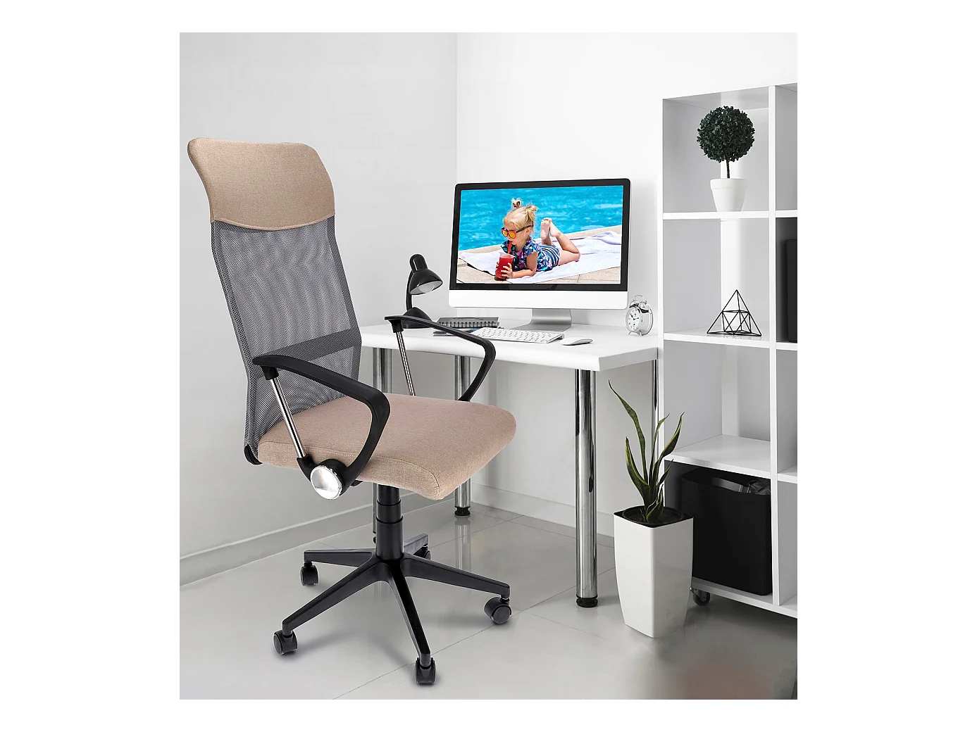 Chaise de bureau avec réglage de hauteur, fonction basculante, tissu lin, beige, (62x76x110-119 cm)