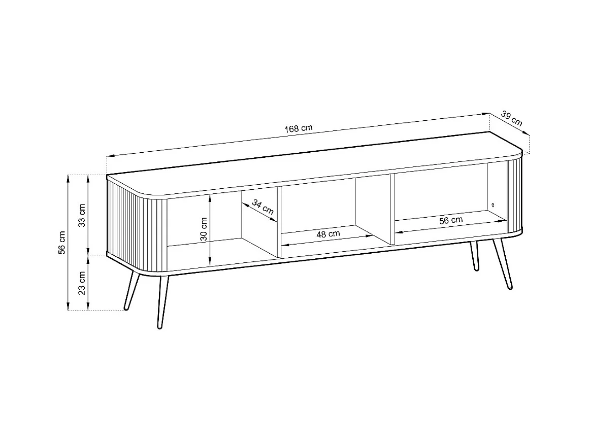 ZOVA Meuble RTV à 3 portes avec volets et pieds, table TV au design moderne, pieds métalliques noirs, 168/57/39cm